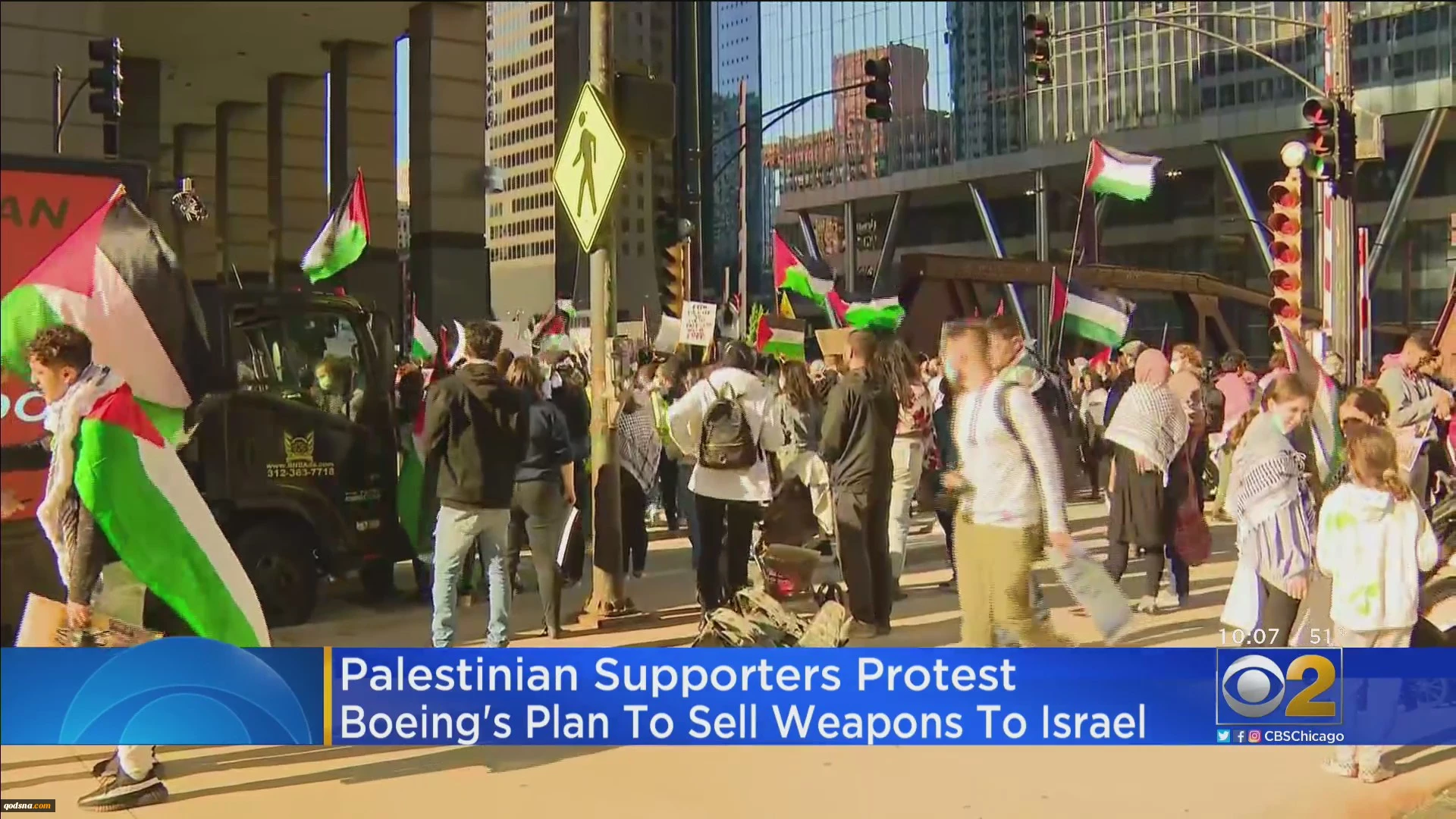 Palestinian supporters voiced their opposition to the move outside Boeing Headquarters, at 100 N. Riverside Plaza.