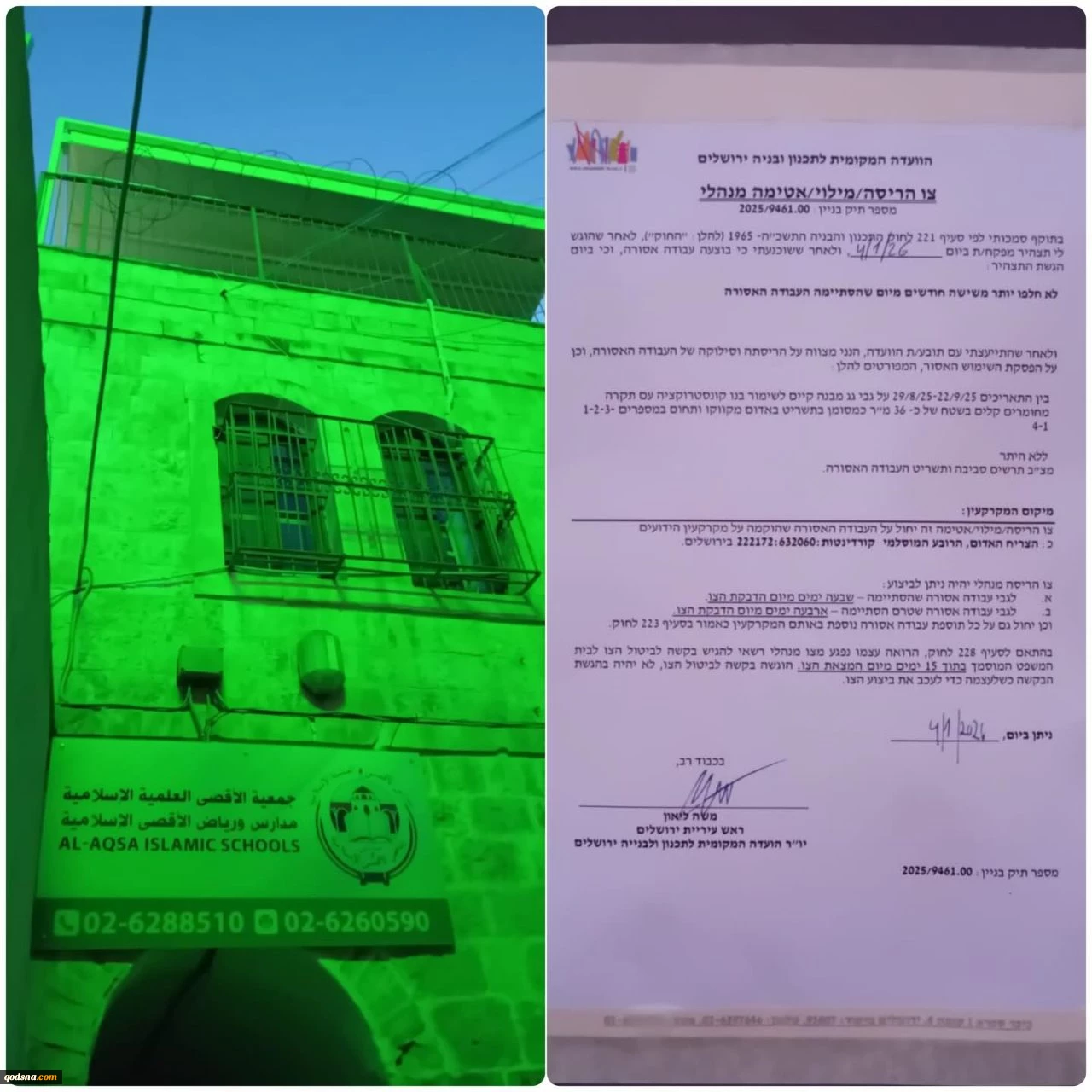 Israeli demolition order targets Al-Aqsa Schools in Al-Quds