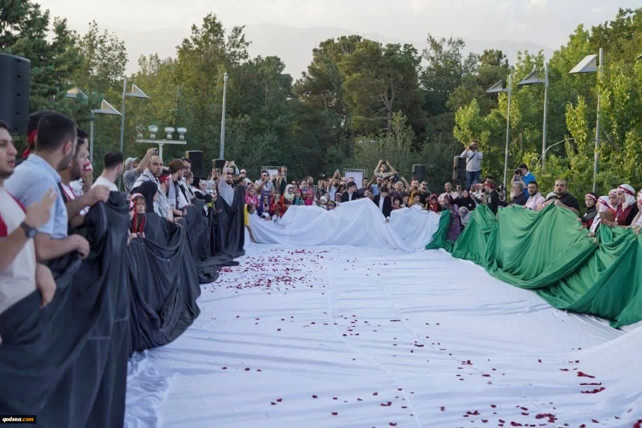 با حضور خانواده شهدای طوفان الاقصی، بزرگترین پرچم جهان به وسعت 1000 متر مربع بر بلندترین میله پرچم خاورمیانه به طول 150 متر در پایتخت ایران، تهران به اهتزاز در آمد 5