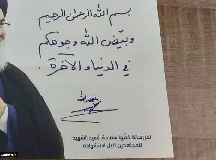 امتیاز دهید : آخرین پیامی که شهید سید حسن نصرالله با خط خودش برای مجاهدان حزبالله نوشت خداوند شما را در دنیا و آخرت روسفید کند.. 2 دوشنبه 15 بهمن 1403 ساعت 10:39