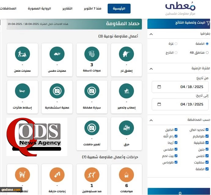 امتیاز دهید : مرکز معطی گزارش داد؛ 10 عملیات مقاومتی در کرانه باختری در 24 ساعت اخیر 2 یکشنبه 31 فروردین 1404 ساعت 13:13