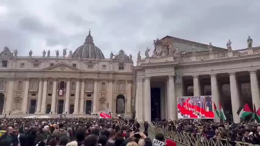 به اهتزاز درآمدن پرچم‌ فلسطین در مراسم خاکسپاری پاپ فرانسیس در واتیکان