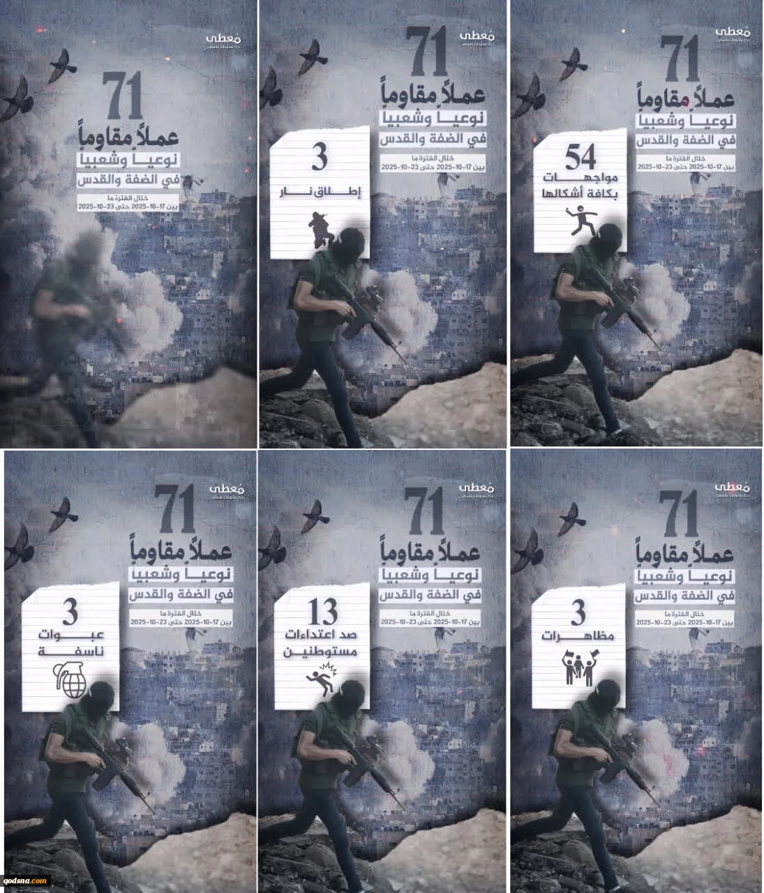 امتیاز دهید : مرکز پژوهشی معطی گزارش داد؛ 71 عملیات مقاومتی در کرانه باختری در هفته گذشته با میانگین بیش از 10 عملیات در هر روز 2 یکشنبه 4 آبان 1404 ساعت 9:32