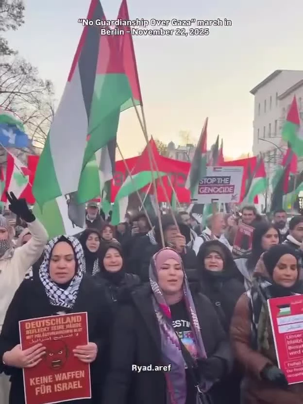 در برلین آلمان تظاهرات گسترده‌ای در حمایت از غزه برگزار شد، جایی که شرکت‌کنندگان شعارهای را برای حمایت از مردم غزه سر دادند. در این تظاهرات، پلیس پایتخت یکی از معترضان را بازداشت کرد.