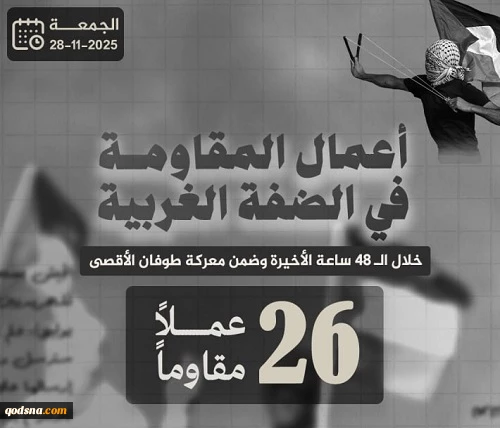 امتیاز دهید : مرکز پژوهشی معطی گزارش داد؛ 26 عملیات مقاومتی در کرانه باختری طی 48 ساعت اخیر+ نمودار 3 شنبه 8 آذر 1404 ساعت 11:43