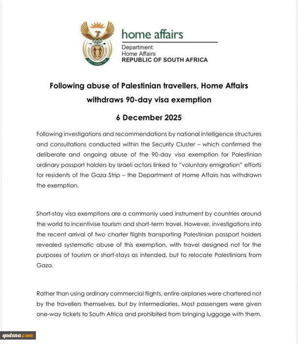 آفریقای جنوبی لغو روادید دارندگان گذرنامه فلسطینی را متوقف کرد 3