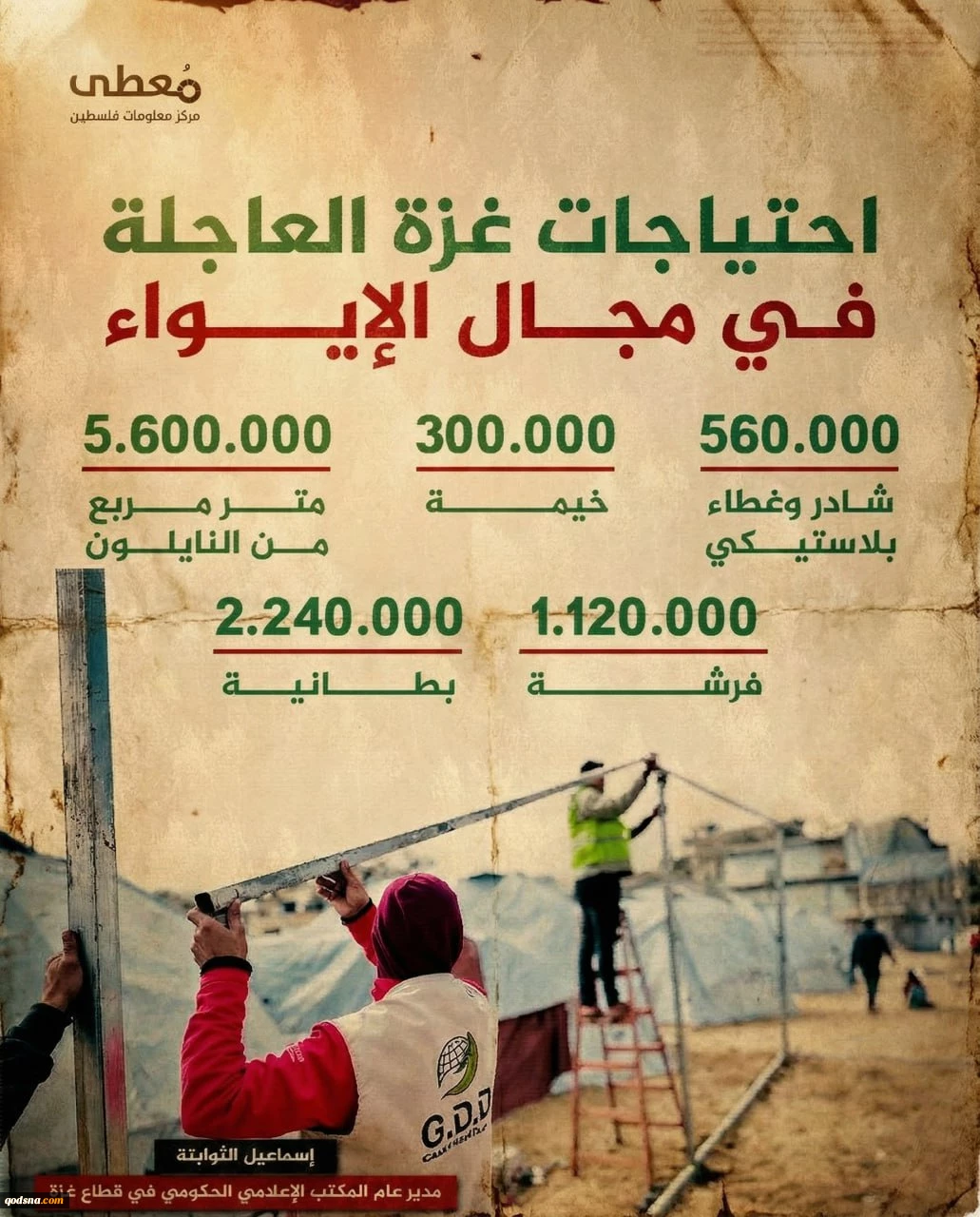مرکز آماری پژوهشی معطی گزارش داد؛ نیازهای فوری مردم غزه در زمینه اسکان در سایه ادامه ممانعت رژیم صهیونیستی از ورود کمک‌ها 3