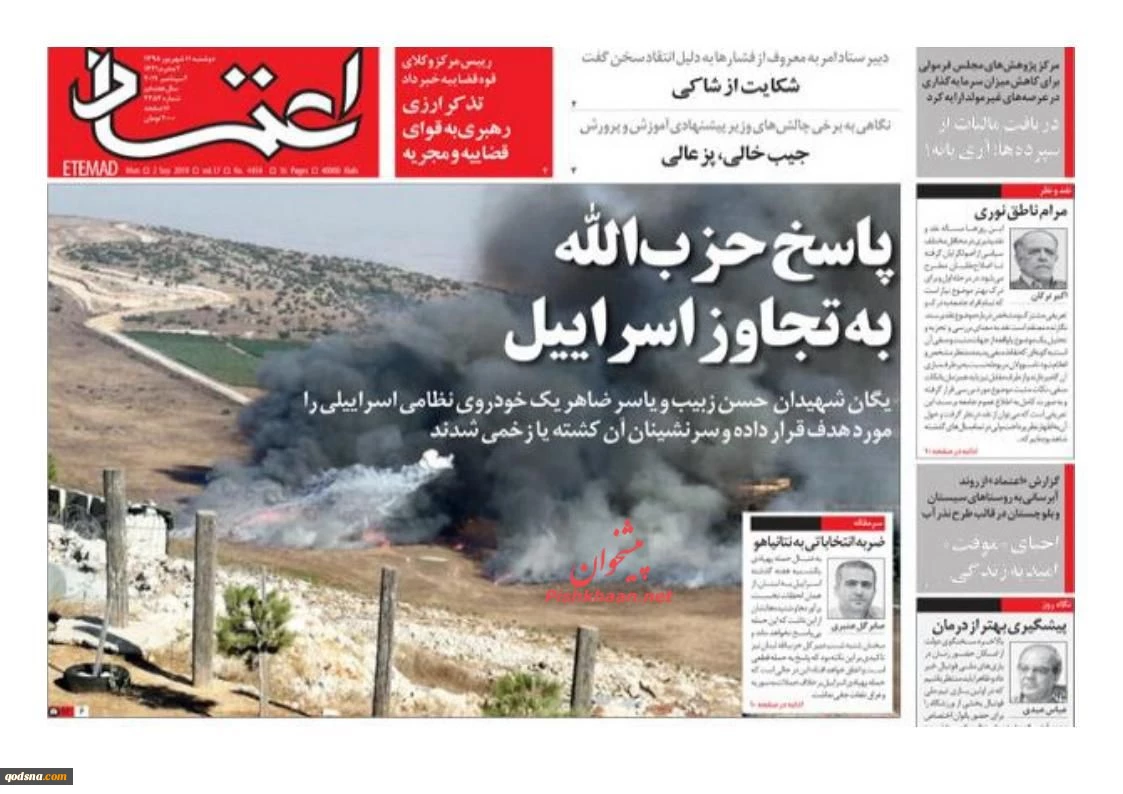 امتیاز دهید : بازتاب پاسخ کوبنده حزب الله به حملات رژیم صهیونیستی در روزنامه های کشور 2 دوشنبه 11 شهریور 1398 ساعت 10:29