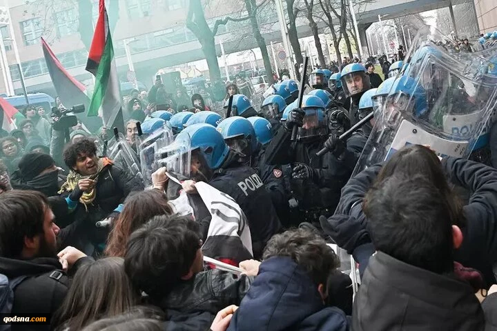 درگیری پلیس و معترضان در بولونیا ایتالیا همزمان با حضور تیم اسرائیلی 2